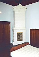 | El apartamento todavía está dividido según el antiguo estilo berlinés: a través de la cocina se llega al pasillo que lleva seguidamente al salón. Aquí hay una estufa de cerámica de la época del resurgimiento económico. La calefacción es a través de un acumulador de calor en electricidad. | ![]() |