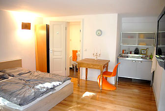 The location of the holiday apartment in DüsseldorfThis 25 m² sized non-smoking holiday apartment lies in the city of Meerbusch (54.000 residents) in the suburb of Büderich. It is not far from Düsseldorf, the airport and Convention Centre, which can be conveniently reached via public transport or with a car (freeway A52, A44). There are a lot of cultural highlights in Meerbusch, for e.g. the Jagdschloss Pesch (hunting castle). Büderich has the EUROGA art path and the Burganlage Dyckhof (Castle) which are both worth a visit. Büderich is also where the host’s favourite Italian restaurant with 4 tables and the best pizzas in the whole world is located (2 minute walk)! Description of the apartmentThe host family has built a lovely extension in their garden, which has recently been renovated and where the holiday apartment is situated. The apartment has a separate entrance, high quality furnishings including a double bed (160 x 200 cm), a small wardrobe, small sitting corner with 2 chairs, LCD flatscreen TV with satellite, as well as wireless internet. The accommodation is suitable for 2 guests. If requested, a baby travel bed can be set up. A pantry kitchen can be found in the living / bedroom and has a fridge with freezer compartment, 2-plate stove, a Nespresso coffee machine with a variety of coffees, a kettle and a selection of teas, a toaster and an egg cooker to prepare breakfast. There is also a small, tiled bathroom with shower, toilet, basin and hairdryer. Smoking is not allowed in the apartment, but you can go into the garden if necessary. The washing machine can be used if requested, at a small charge. We regret that pets cannot be brought along. If you wish, you may also use the garden (please ask the host). The hosts The hosts are a family of 5, who are very friendly and enjoy good company. Foreign guests will receive a big warm welcome in fluent English and Czech, or in less fluent French or Spanish. Price for the holiday apartment
